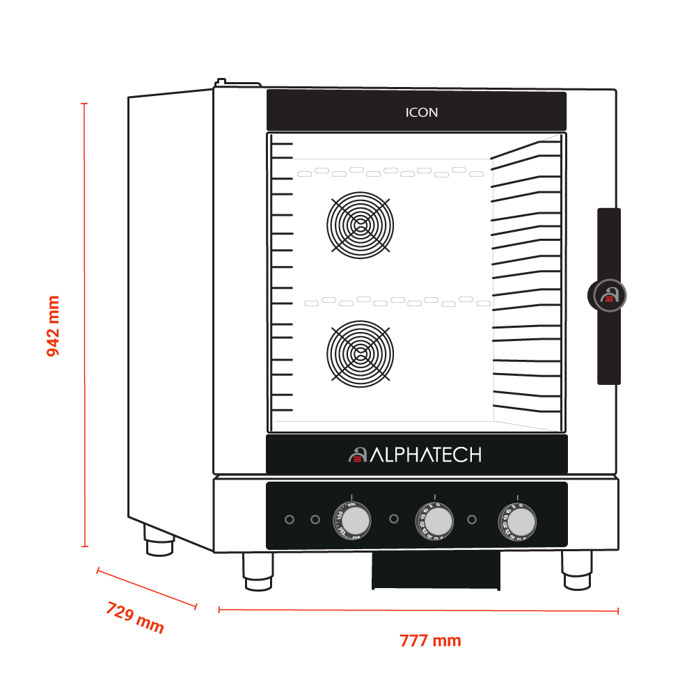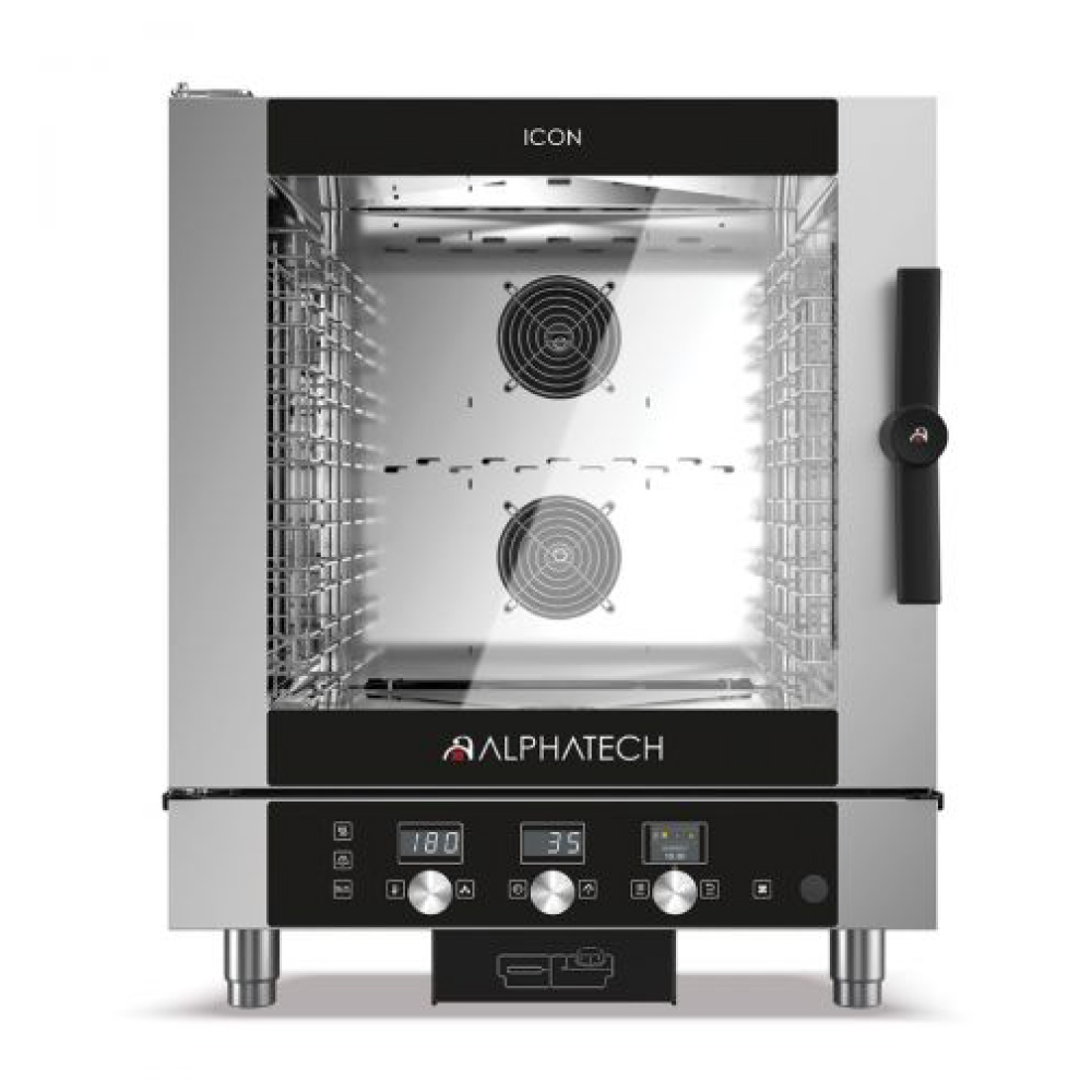 Φούρνος Icon αερίου 7 θέσεων (600x400mm ή GN 1/1), με ηλεκτρονικό χειρισμό , Alphatech Ιταλίας. Οι φούρνοι Icon αποτελούν την ιδανική λύση για επιχειρήσεις όπως cafe-bar , αναψυκτήρια , μικρά εστιατόρια ή εταιρίες. Οι μικρές τους διαστάσεις σε συνδυασμό με τις υψηλές προδιογραφές τους δίνουν στον χρήστη του φούρνου την δυνατότητα για γρήγορη και εξαιρετικής ποιότητας παρασκευής φαγητού. Κάθε πιάτο είναι ένα αριστούργημα από το μαγείρεμα στον ατμό , το τηγάνισμα και το ψήσιμο στην σχάρα.