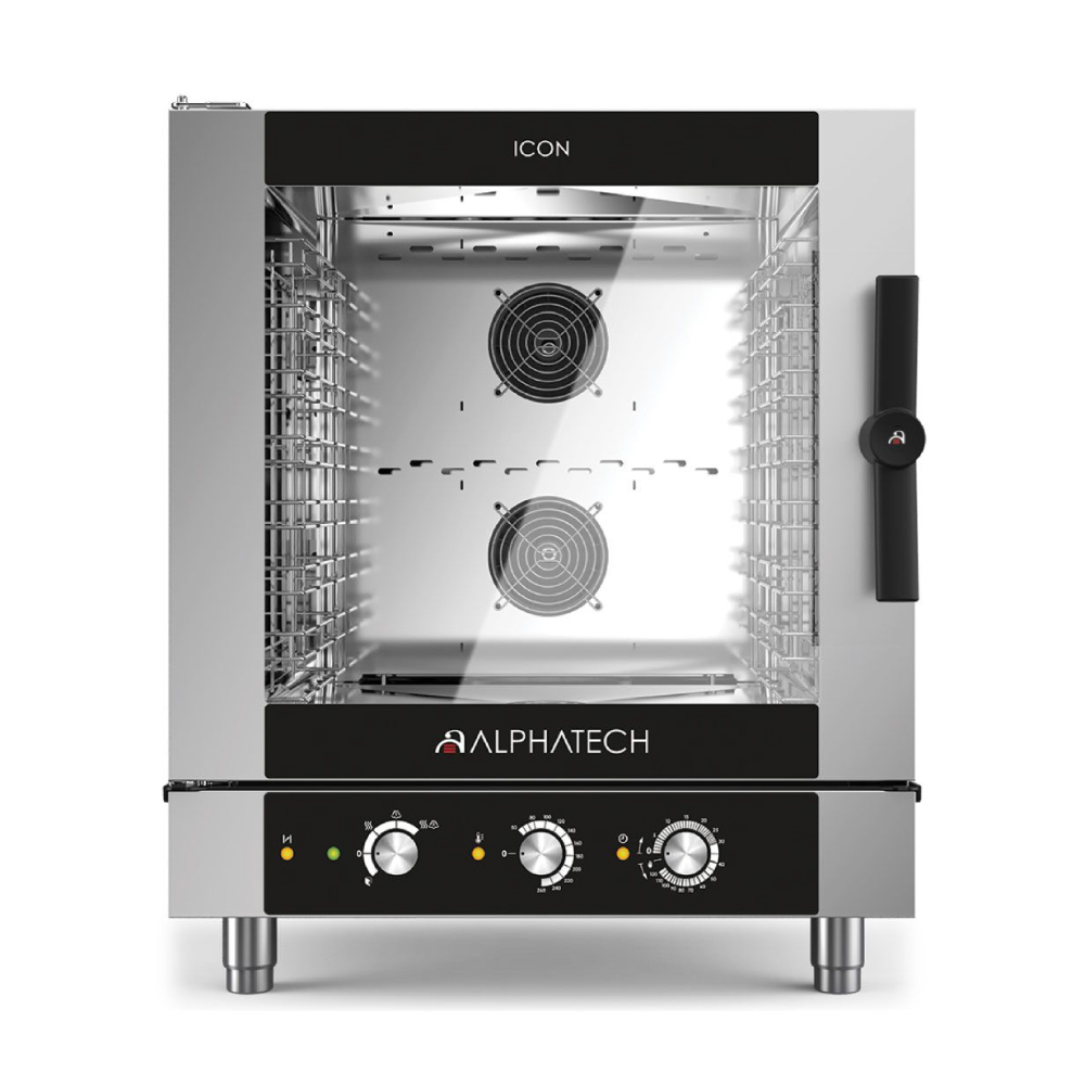 Φούρνος Icon αερίου 7 θέσεων (600x400mm ή GN 1/1), με μηχανικό χειρισμό , Alphatech Ιταλίας. Οι φούρνοι Icon αποτελούν την ιδανική λύση για επιχειρήσεις όπως cafe-bar , αναψυκτήρια , μικρά εστιατόρια ή εταιρίες. Οι μικρές τους διαστάσεις σε συνδυασμό με τις υψηλές προδιαγραφές τους δίνουν στον χρήστη του φούρνου την δυνατότητα για γρήγορη και εξαιρετικής ποιότητας παρασκευής φαγητού. Κάθε πιάτο είναι ένα αριστούργημα από το μαγείρεμα στον ατμό , το τηγάνισμα και το ψήσιμο στην σχάρα.
