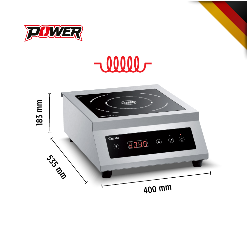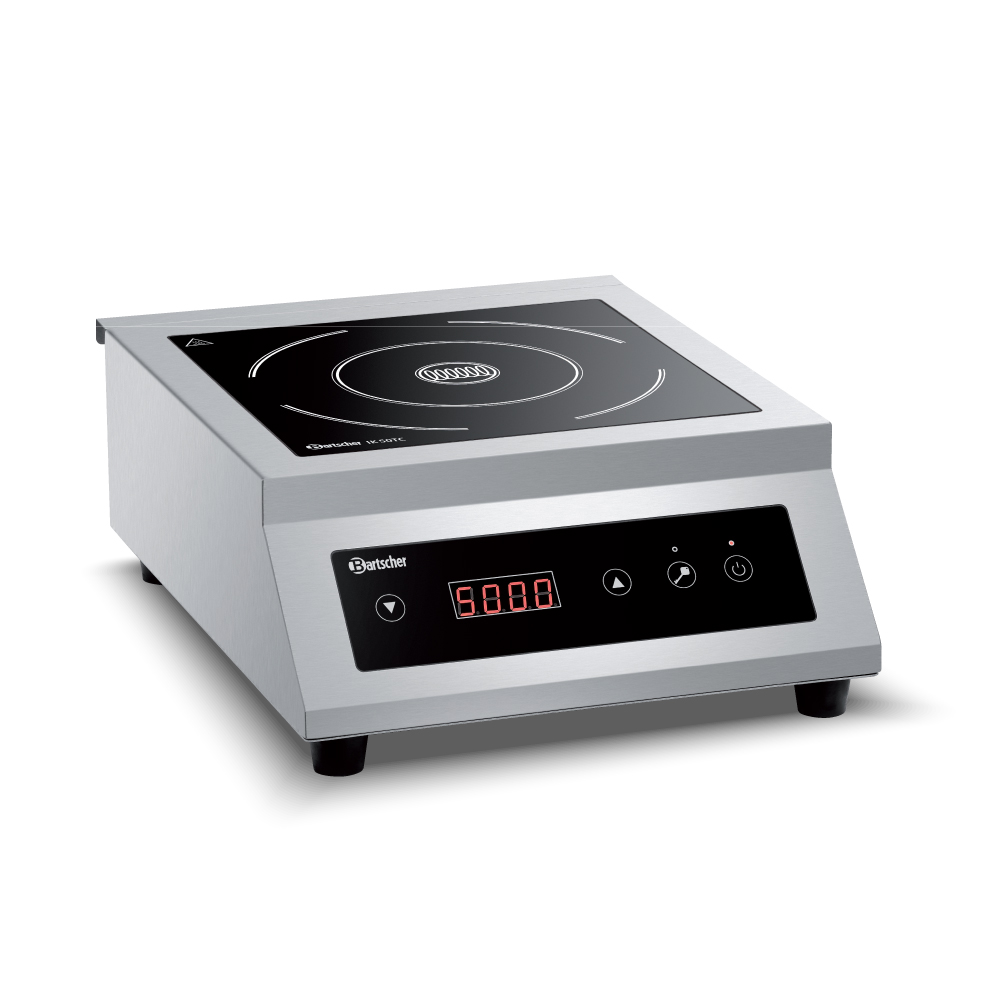 Επαγωγική (induction) ηλεκτρονική εστία ΙΚ 50 TC , Bartscher Γερμανίας. Με τα 5 kW, η επαγωγική εστία εξασφαλίζει μεγάλη απόδοση στη φορητή εστία. Η ρύθμιση της απόδοσης πραγματοποιείται εύκολα μέσω χειρισμού αφής.