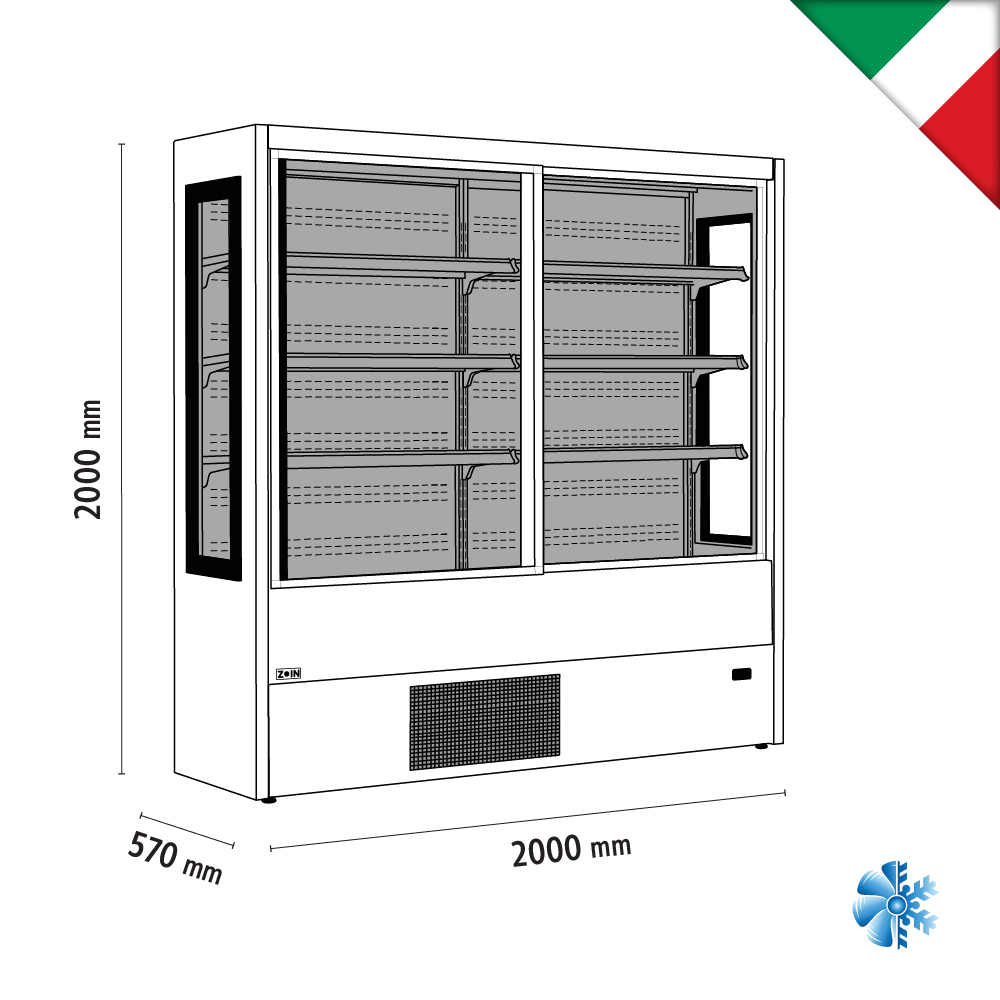 Self service συντήρησης με συρόμενες πόρτες και πανοραμικά πλαϊνά, χωρητικότητας 751 lt , του εργοστασίου Ζoin Ιταλίας.
