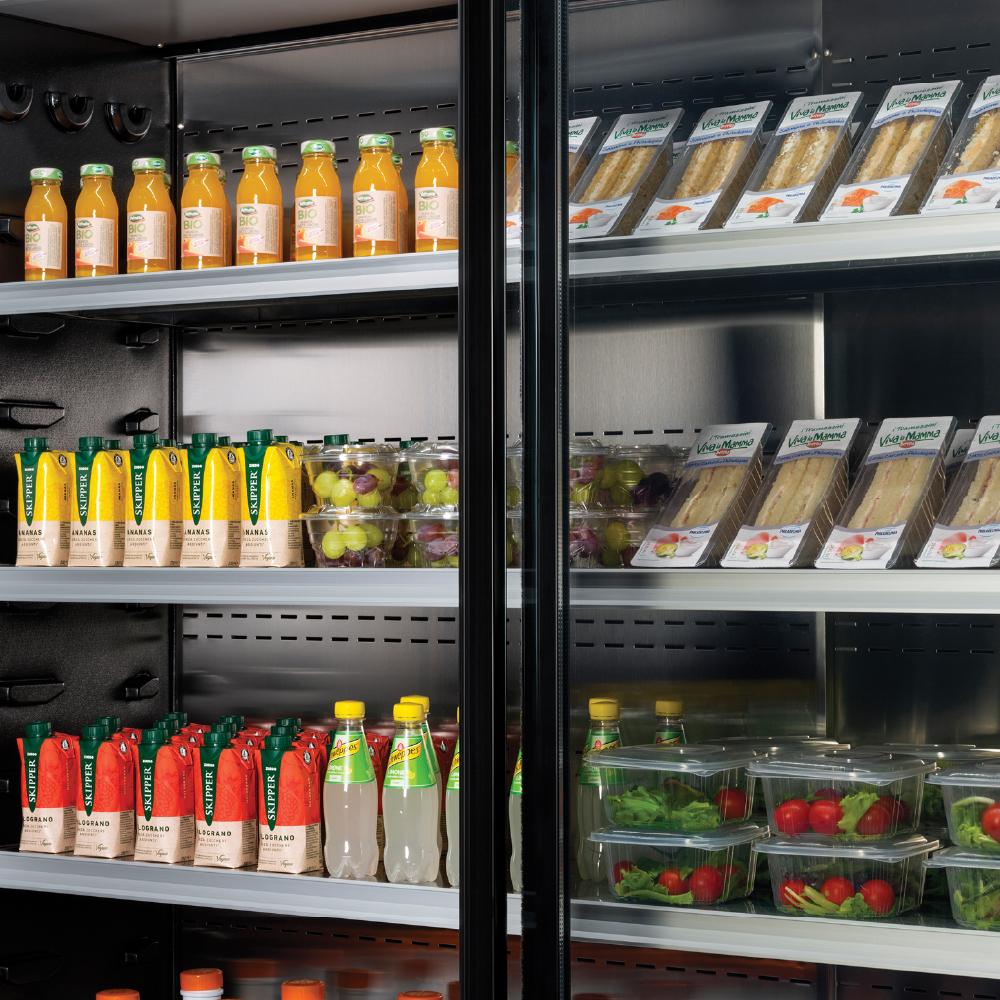 Self service συντήρησης με συρόμενες πόρτες και τυφλά πλαϊνά, χωρητικότητας 651 lt , του εργοστασίου Ζoin Ιταλίας.