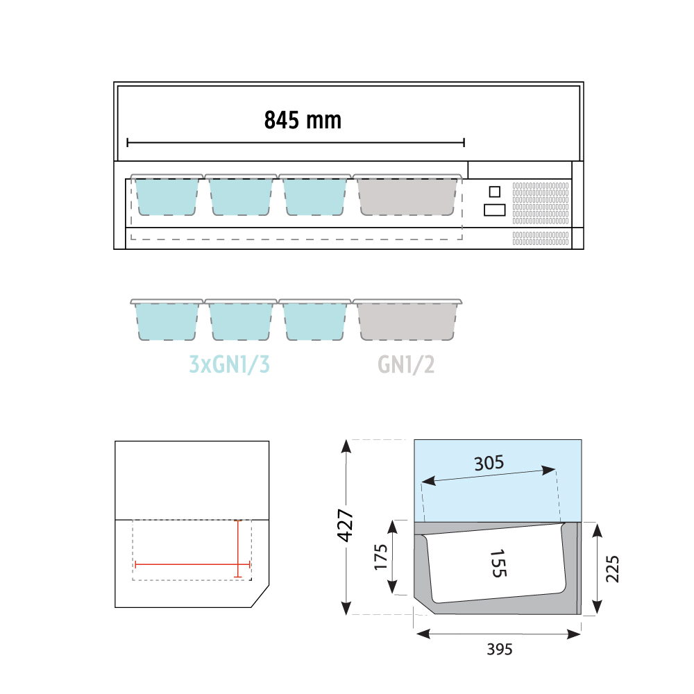 Επιτραπέζια βιτρίνα Set up μήκους 1200 mm για GN . Προμηθευτής : KlimaItalia