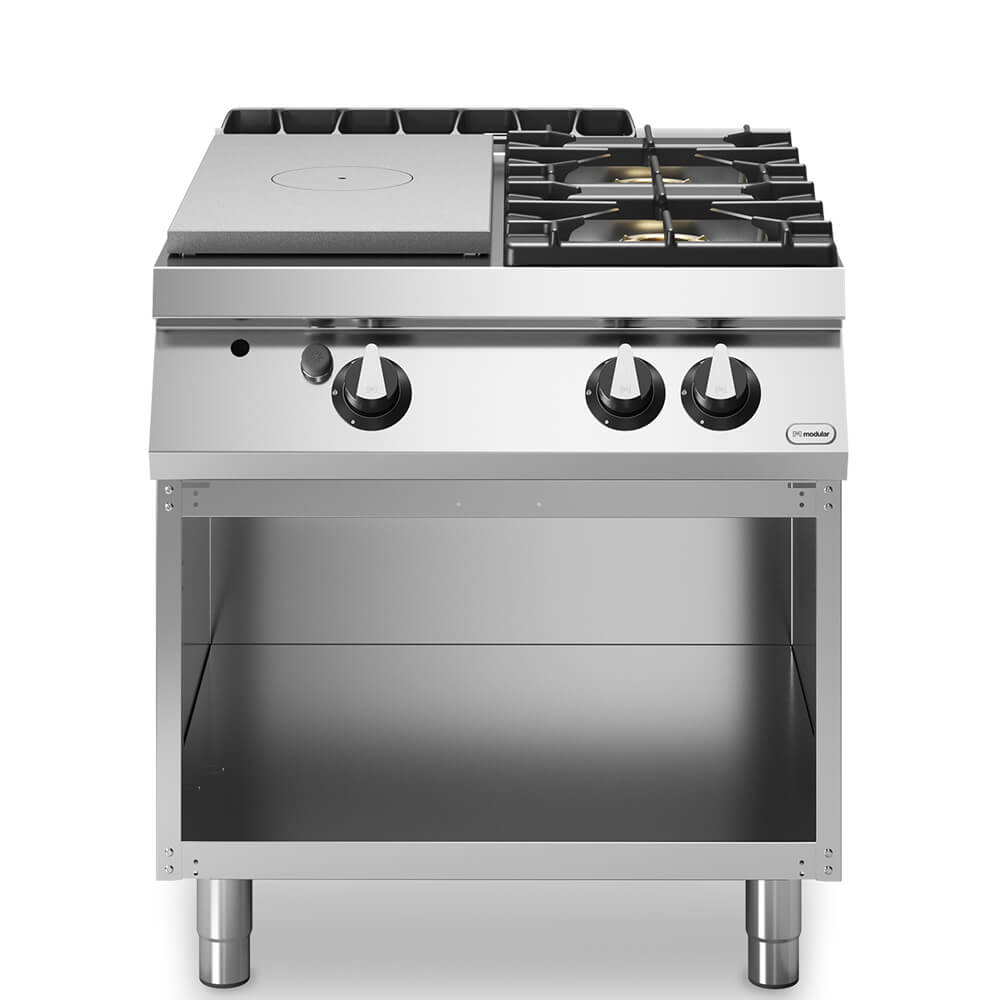 Solid top αερίου 7kW & 2 φλόγ. (1×5,5kW+1×7,5kW εμαγέ τάσια) με ανοικτή βάση R90/80TPPGFB/A ROC900