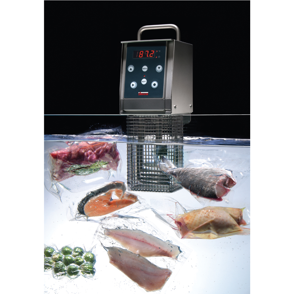 Sous-Vide χειρός , Softcooker XP Sirman Ιταλίας Ψηφιακή ένδειξη θερμοκρασίας λειτουργίας 25 προγράμματα με δυαντότητα αποθήκευσης Κατασκευή Inox με προστασία IP X3 Μπορεί να εφαρμοστέι σε κατσαρόλα με σφυγκτήρα ( μέγιστο βάθος 165mm) Αισθητρήρας θερμοκρασίας για αποφυγή υπερφόρτωσης & υπερθέρμανσης