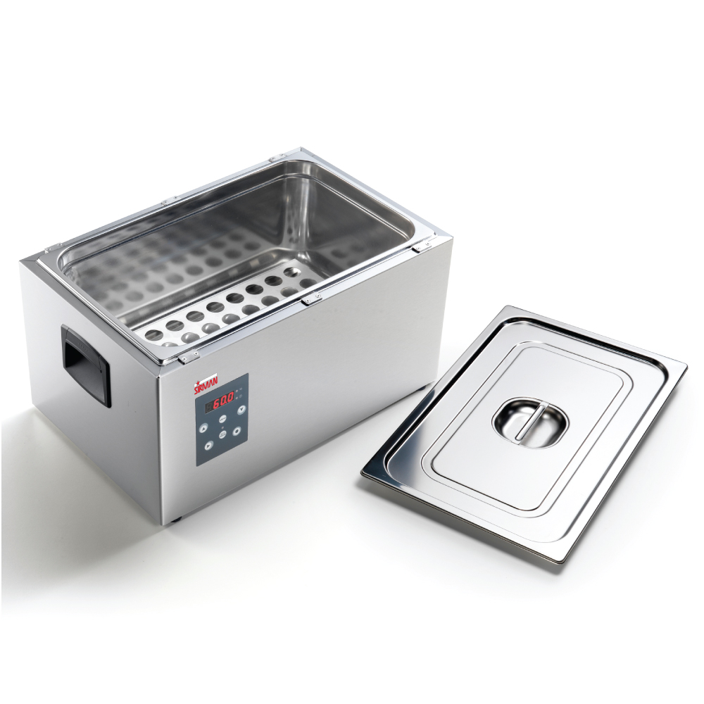 Sous-Vide 1/1 GN , με βρυσάκι απορροής , Sirman Ιταλίας. Ανοξείδωτη κατασκευή Λαβές για εύκολη μεταφορά Ισχυρά αντικραδασμικά επικαλυμμένα στοιχεία θέρμανσης σε επαφή με τον πυθμένα της δεξαμένης Ηλεκτρονικό σύστημα ελέγχου της θερμοκρασίας με ψηφιακή ένδειξη 25 προγράμματα με δυνατότητα αποθήκευσης Δυνατότητα ρύθμισης θερμοκρασίας σ Cº & Fº Συμπεριλαμβάνεται καπάκι Πρακτικό βρυσάκι απορρόης για άδειασμα του νερού