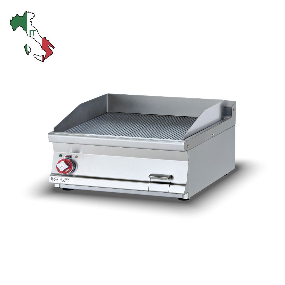 Πλατώ ηλεκτρικό μεσαίο ραβδωτό χρωμίου , του εργοστασίου Lotus Χώρα προέλευσης : Ιταλία Κατασκευασμένο με χρήση ανοξείδωτου χάλυβα ποιότητας (CrNi 18/10 AISI 304) , με διακόπτες αδιάβροχης ποιότητας (IPX5).