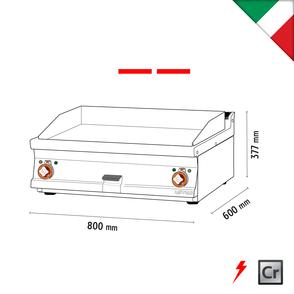 Πλατώ ηλεκτρικό , διπλό λείο χρωμίου , του εργοστασίου Lotus Ιταλίας. Κατασκευασμένο με χρήση ανοξείδωτου χάλυβα ποιότητας (CrNi 18/10 AISI 304) , με διακόπτες αδιάβροχης ποιότητας (IPX5).