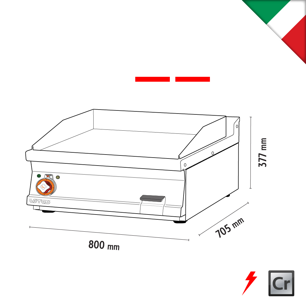 Πλατώ ηλεκτρικό διπλό λείο χρωμίου , του εργοστασίου Lotus Ιταλίας. Κατασκευασμένο με χρήση ανοξείδωτου χάλυβα ποιότητας (CrNi 18/10 AISI 304) , με διακόπτες αδιάβροχης ποιότητας (IPX5).