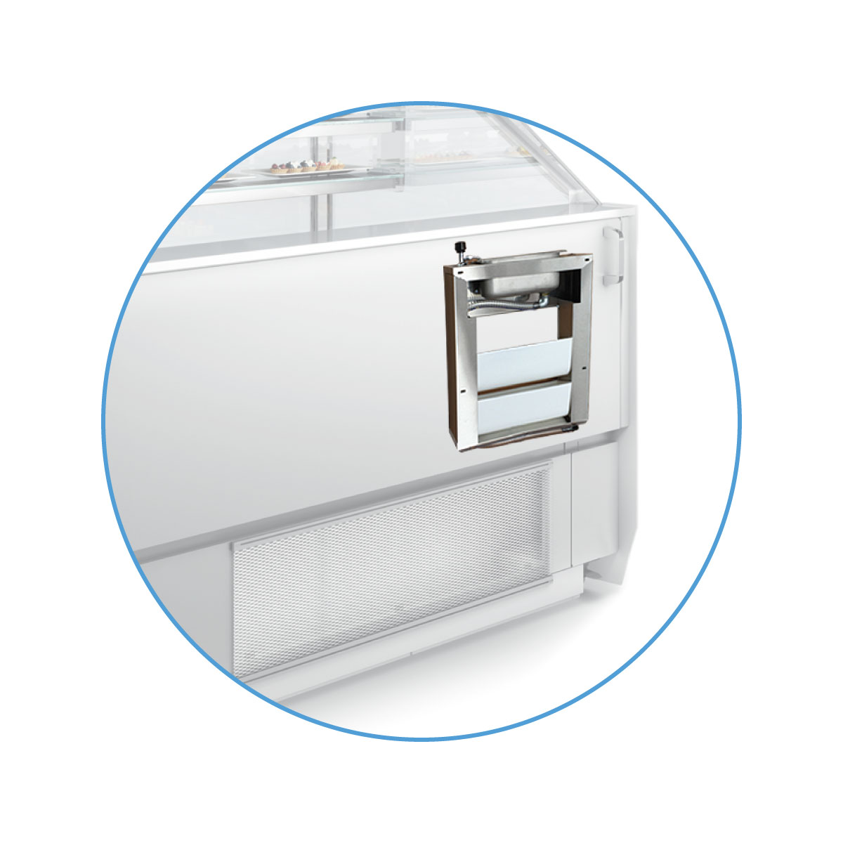 Θήκη με βρυσάκι, με δυνατότητα τοποθέτησης αριστερά , για βιτρίνες παγωτού Millennium.