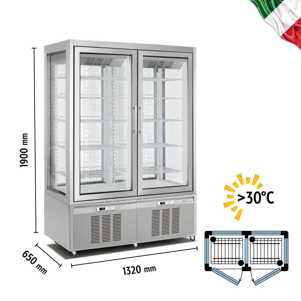 Πανοραμική διπλή βιτρίνα κατάψυξη-συντήρηση , βεβιασμένης ψύξης & αυτόματης απόψυξης , χωρητικότητας 840 lt. Προμηθευτής:Longoni