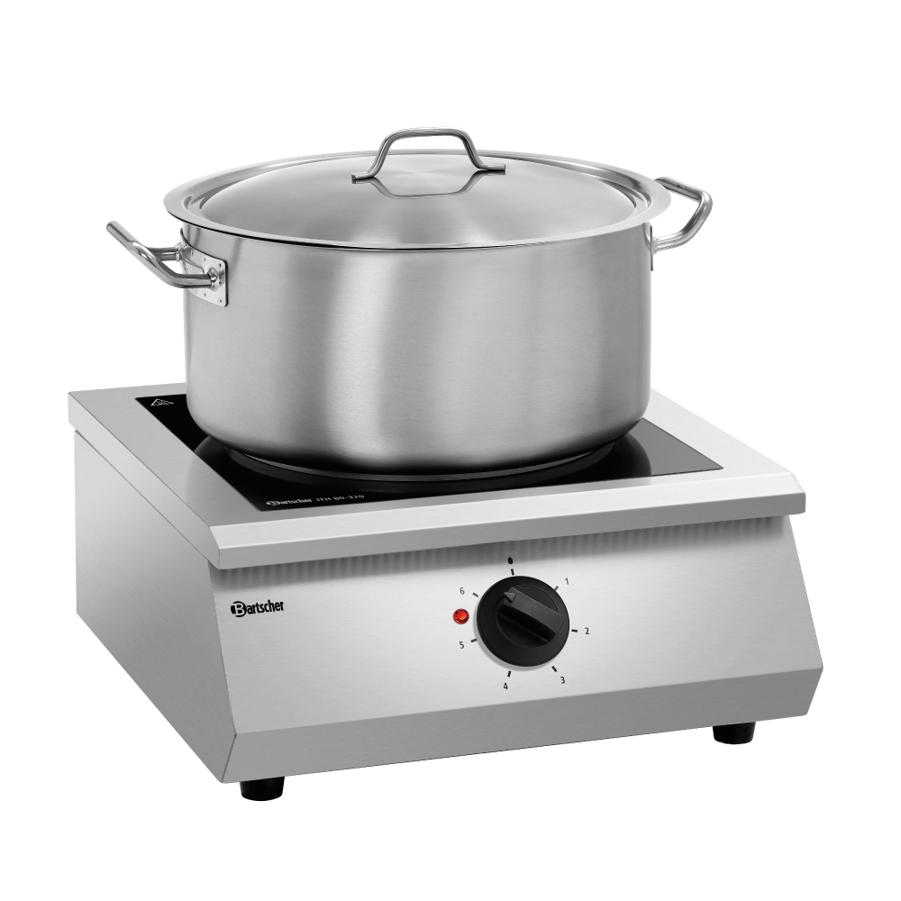 Επαγωγική (induction) αναλογική εστία ITH 80-230 XL , Bartscher Γερμανίας. Μεγάλη απόδοση – Μεγάλη εστία. Με μέγεθος κατσαρόλας έως και 320 mm και απόδοση 8 kW, στη φορητή επιτραπέζια εστία μπορούν να ετοιμαστούν ακόμα και μεγάλες ποσότητες.